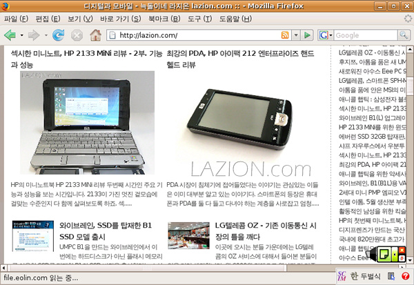 윈도가 아닌 이상 인터넷 익스플로러를 쓸 수 없는 B1L에서의 파이어폭스는 윈도에서 돌렸던 만큼 잘 작동해 줍니다. 그 이야기는 다음, 네이버, 엠파스 등의 포탈 사이트에 로그인해서 메일이나 게시물 확인/작성하는데 별 지장이 없다는 뜻이고, 공인인증서 등 액티브X가 들어가는 홈페이지는 여전히 사용할 수 없다는 뜻입니다. 하지만 윈도에서보다 못한 점이 두가지 있습니다.
