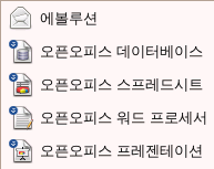 오픈오피스는 워드에 해당하는 워드 프로세서(Writer), 엑셀에 해당하는 스프레드시트(Calc), 파워포인트에 해당하는 프레젠테이션(Impress), 그리고 그래픽 프로그램인 드로잉으로 구성되어 있습니다. 이들은 공통적으로 마이크로소프트 오피스 문서를 비롯한 다양한 데이터 파일과의 호환성이 좋으며, PDF로 내보내기 기능 또한 갖고 있습니다.