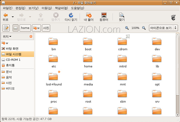 윈도의 탐색기와도 같은 파일 찾아보기 입니다. 윈도 탐색기를 써봤다면 별로 어려울 것이 없죠. 보시면 알겠지만 바탕 화면 폴더도, 휴지통도 있습니다. 그리고 B1 사용자라면 정겨운 소프트웨어가 하나 있습니다.