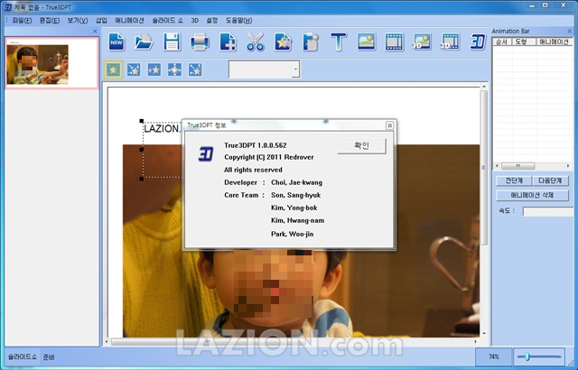 3D 애플리케이션 가운데 재미있는 것으로는 프레젠테이션을 만들 수 있는 True3DPT라는 프로그램이 있습니다. Redrover라는 곳에서 만든 것으로 국산 프로그램인 것 같습니다.