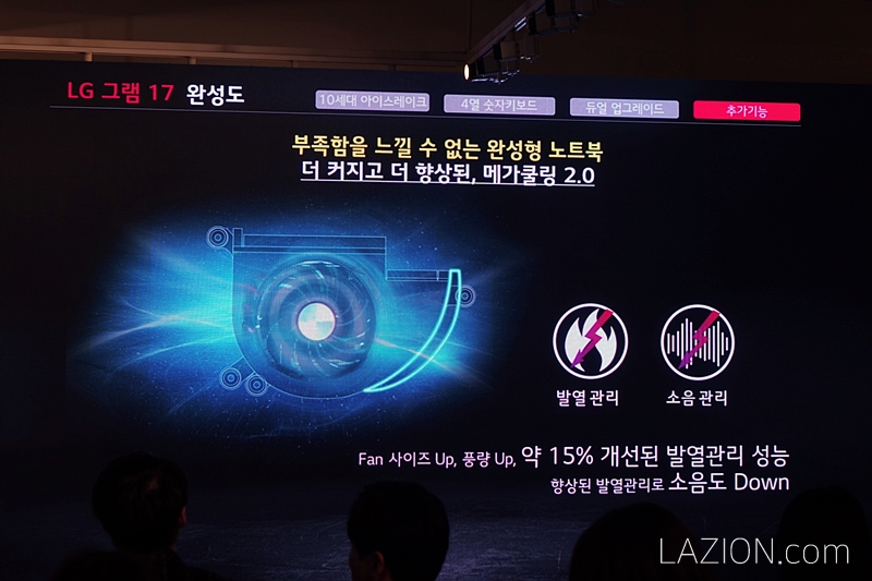 메가쿨링 2.0을 도입하여 발열관리에서 15% 개선을 이뤘고 소음은 줄였다고 합니다.
