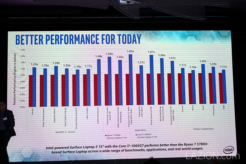 그래서 인텔은 보다 실용적인 측면에서 PC를 활용했을 때를 중심으로 벤치마크를 진행했습니다. 그리고 그 결과물은 다음과 같습니다.