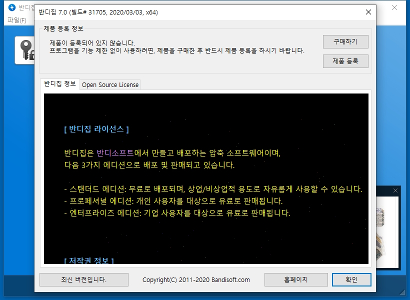 반디소프트가 발표한 이번 반디집 7.0 라이선스 정책에서 가장 크게 바뀐 점은 유료 버전이 생겼다는 점입니다. 물론 기존과 같이 무료로 쓸 수 있는 스탠더드 에디션은 그대로 존재합니다만 대신 광고가 들어갑니다. 스탠더드 에디션 또한 여전히 기업 및 공공기관 등에서 상업적인 용도로 쓸 수 있습니다.