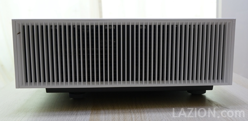 원래 프로젝터는 열이 많이 나는 제품이죠. 이를 위해 양 옆에는 통풍구가 있습니다. 설명서에 따르면 왼쪽으로 공기가 들어가 오른쪽으로 나오는 방식이니 설치 때 참고하시기 바랍니다.