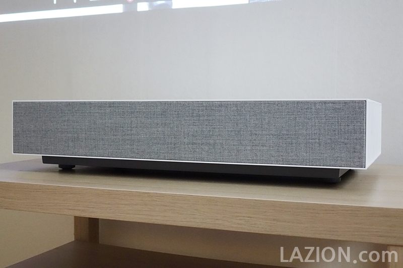 크기는 680x347x128(mm)로 겉보기에는 조금 넙데데한 스피커 또는 사운드바로 보일 뿐입니다만 전면을 감싼 크바드라트 사의 패브릭 소재가 인공적인 느낌을 줄여주면서 다른 가구와 제법 잘 어울립니다.