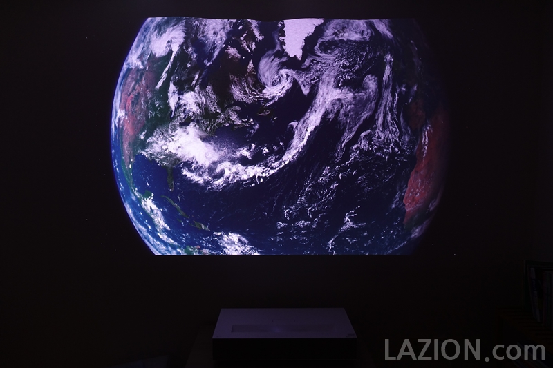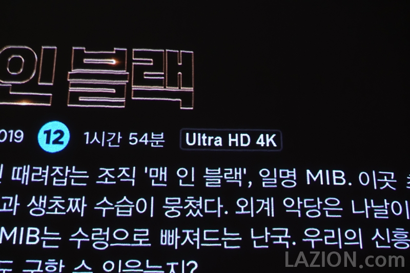4K(UHD) 콘텐츠 또한 잘 보여줍니다. 전용 스크린이 아닌지라 아쉬움은 있었지만 20만대1을 자랑하는 뛰어난 명암비나 풀HD를 확실히 뛰어넘은 미려한 4K 해상도를 큰 화면으로 즐길 수 있었습니다. 어둡게 하는 바람에 영상에 대한 집중도가 올라가는 건 프로젝터가 가지는 덤이 되겠죠.
