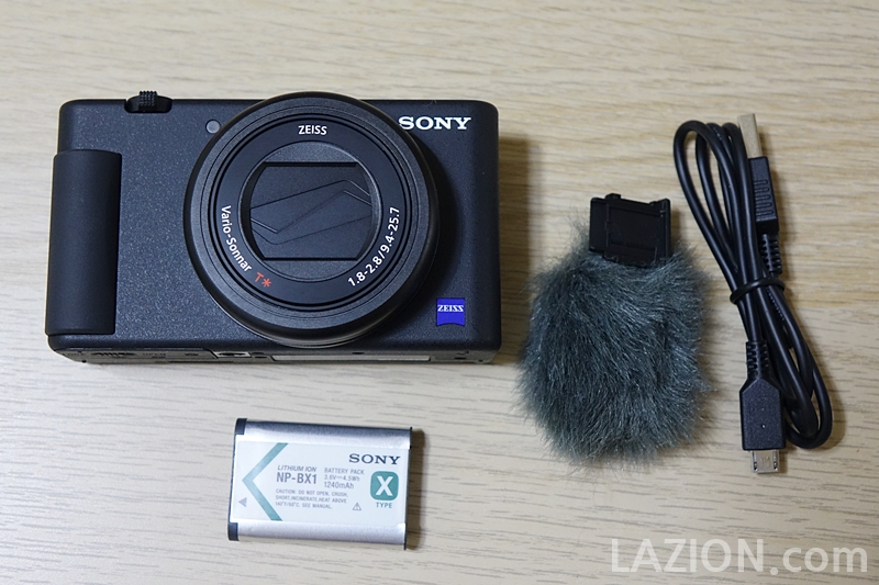 카메라 본체 격인 ZV-1을 보시면 진작 느낌이 올 겁니다. 바로 RX100 시리즈의 기반을 둔 가지치기 모델입니다. 이 ZV-1은 이미 RX100M7까지 나오며 사골이라고 불리기까지 하면서도 여전히 꽤나 팔리고 있는 RX100 시리즈가 만들어 놓은 기반에서 동영상 촬영 중심으로 소니가 최적화한 제품이라고 이해하시면 좋을 것 같습니다. 부속이 적은 거야 그렇다쳐도 아래의 무선 그립과 함께 쓸만한 적절한 길이의 핸드스트랩 정도는 제공하면 좋을 것 같네요.