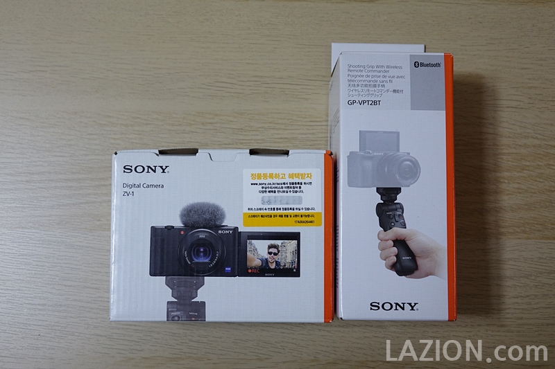 소니 ZV-1은 제품 하나지만 카메라로만 쓰면 부족함을 느낄 구성입니다. 정확히 말하자면 VZ-1을 제대로 쓰려면 블루투스 무선 그립인 GP-VPT2BT을 함께 구입해야 하기 때문이죠. ZV-1 상자부터 VZ-1과 GP-VPT2BT의 조합을 기본으로 해서 보여주고 있으며 패키지로도 판매 중입니다.