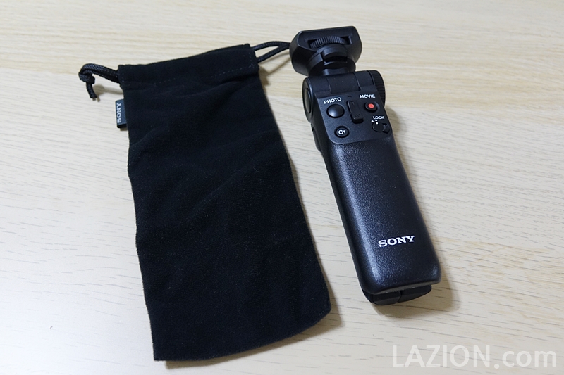 ZV-1 본체의 도우미인 GP-VPT2BT 블루투스 무선 그립입니다. 기왕 파우치를 제공하겠다면 본체와 연결하여 갖고 다니는 경우가 많으니 본체까지 감쌀 수 있는 크기의 파우치를 제공하면 더 좋았겠습니다.