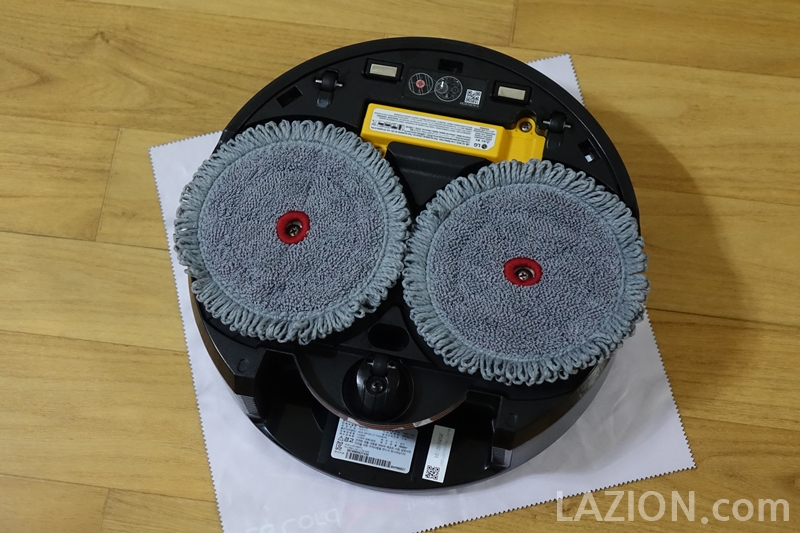 앞에서도 잠깐 이야기했지만 물걸레 전용으로 나온 만큼 M9은 물걸레도 큼지막한 것 두개를 쓰는데, 그런 김에 아예 로봇청소기 본체 자체의 구동도 걸레의 회전로 해버립니다.