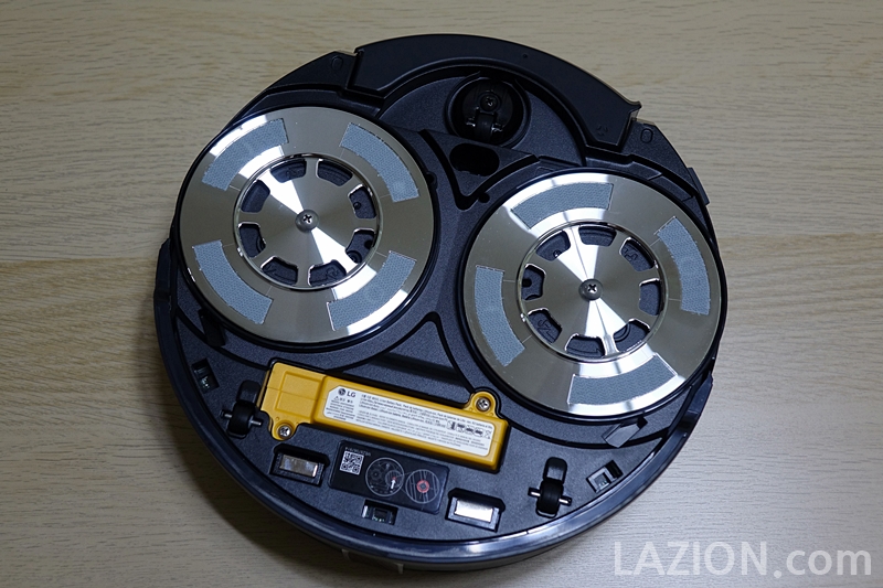 앞에서도 잠깐 이야기했지만 물걸레 전용으로 나온 만큼 M9은 물걸레도 큼지막한 것 두개를 쓰는데, 그런 김에 아예 로봇청소기 본체 자체의 구동도 걸레의 회전로 해버립니다.