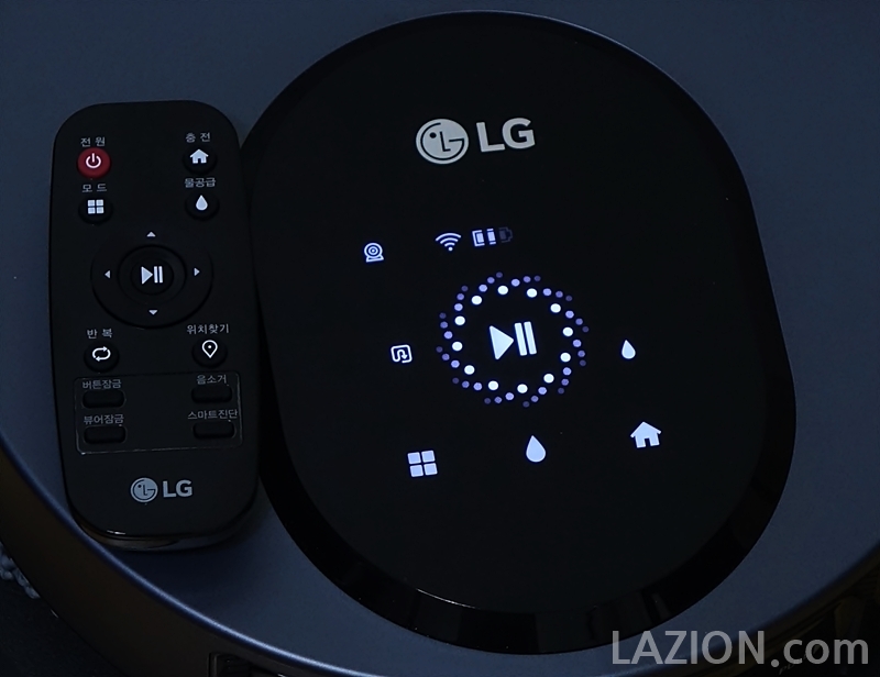 M9으로 하여금 청소를 시작하는데에는 크게 세가지 방법이 있습니다. 본체의 터치 패널을 이용하는 것, 그리고 리모콘을 쓰는 것과 스마트폰의 ThinQ 앱을 활용하는 것이죠. ThinQ 앱에 대한 이야기는 좀 길어지기 때문에 다음 편에서 하기로 하겠습니다.
