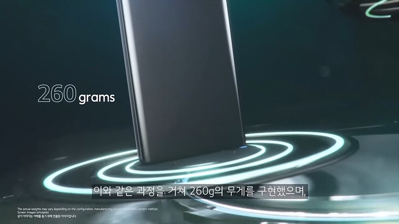 액세서리 형태로 장착하는 듀얼 스크린을 쓰는 V50의 경우 320g이 넘어가는 것보다는 훨씬 가벼워졌고 삼성 갤럭시 Z 폴드2의 285g보다 가볍습니다. 매우 가볍다고까지는 못하겠지만 그래도 휴대할만한 정도까지는 되지 않나 생각합니다.