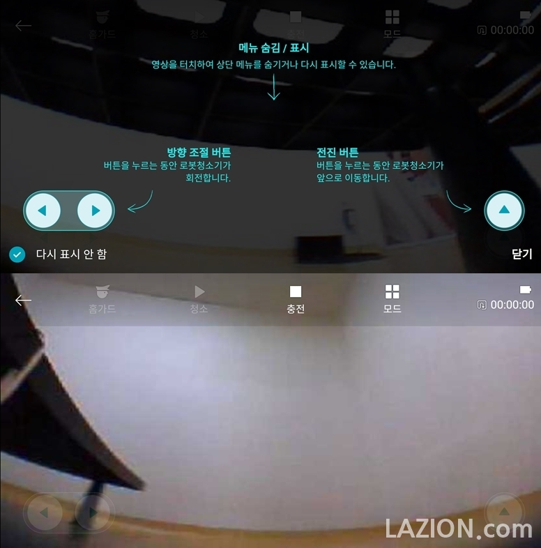 홈뷰 또한 재미있는 기능이죠. 말 그대로 그냥 집안을 보는 겁니다. 화질이 좀 열악하긴 하지만 그래도 집안에 어떤 이상이 있는지 정도는 충분히 확인 가능합니다. 당연히 원격 조작됩니다.