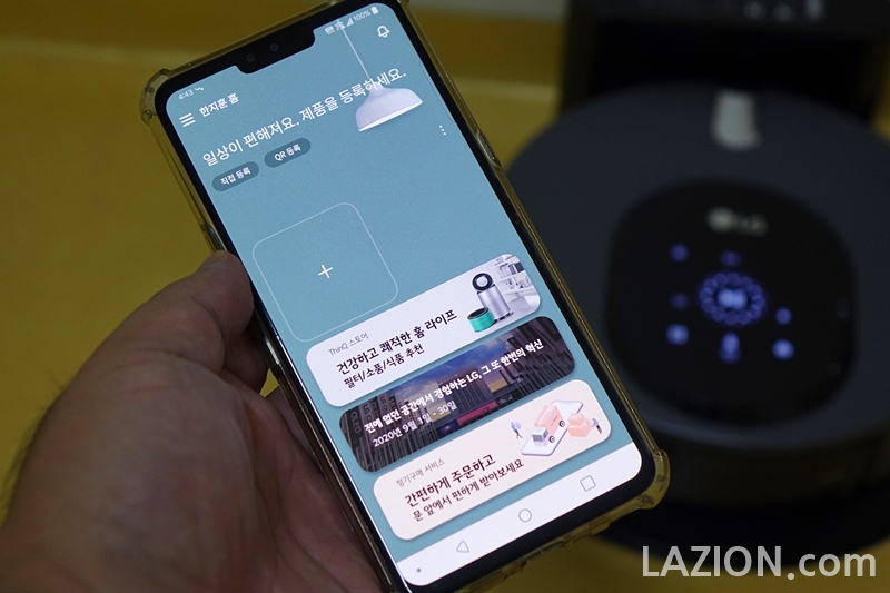 코드제로 M9의 능력 가운데 기본적인 청소는 기본으로 주어지는 리모콘만으로도 충분히 가능합니다. 다만 보다 섬세하게 조작하겠다면 ThinQ 앱의 활용은 필수죠. ThinQ 앱은 플레이스토어나 앱스토어에서 다운로드하여 설치 가능하며, 이미 LG전자 가전 제품을 이용 중이라면 이미 설치되어 있을 수도 있습니다.