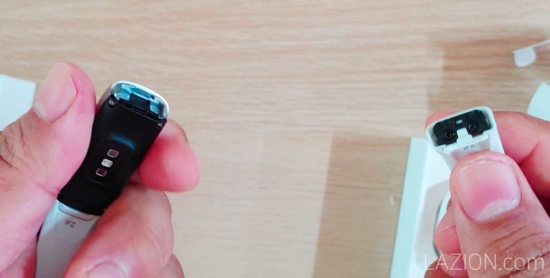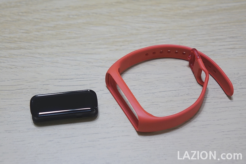 전작과는 달리 미밴드나 갤럭시 핏e에서 썼던 것처럼 본체를 밴드에 끼워 쓰는 방식으로 바뀌었습니다. 실제로 보면 갤럭시 핏e의 밴드와 거의 비슷해 보입니다.