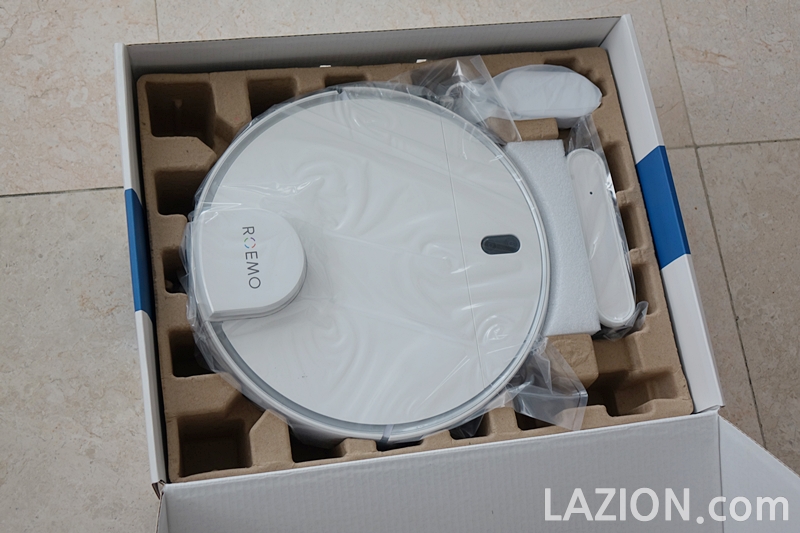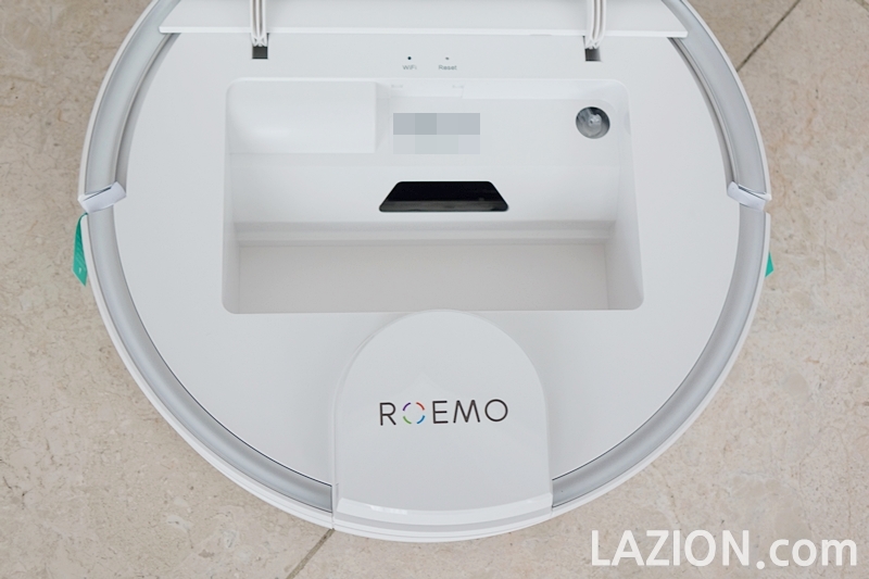 처음 로이모 프로의 상자를 였었을 때 제일 먼저 눈에 띄는 부분은 역시 최신 로봇청소기들은 대부분 갖고 있다는 LDS(Laser Distance Sensor)의 존재입니다. 어떤 제품은 몸통 가운데에 있지만 로이모 프로의 경우에는 뒷쪽에 자리잡고 있습니다.