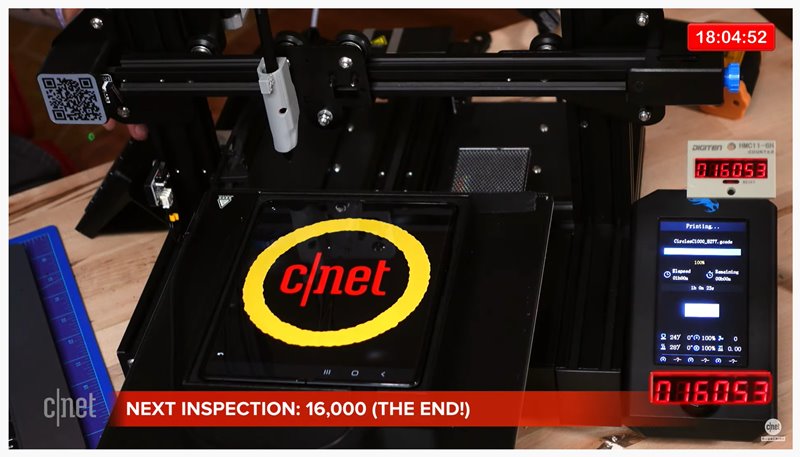 현재 스트리밍과 동시에 진행 중인 이 실험에서 CNET은 3D 프린터를 개조하여 S펜으로 화면에 반복적으로 한시간에 1000회씩 원을 그리는 방법으로 총 16시간 진행하게 됩니다. 매 1000회마다 잠깐 기계를 멈춰 상태를 점검하고요. 모두 마친다면 S펜은 갤럭시 Z 폴드3의 화면 위에서 거의 5km를 쓰게 됩니다.