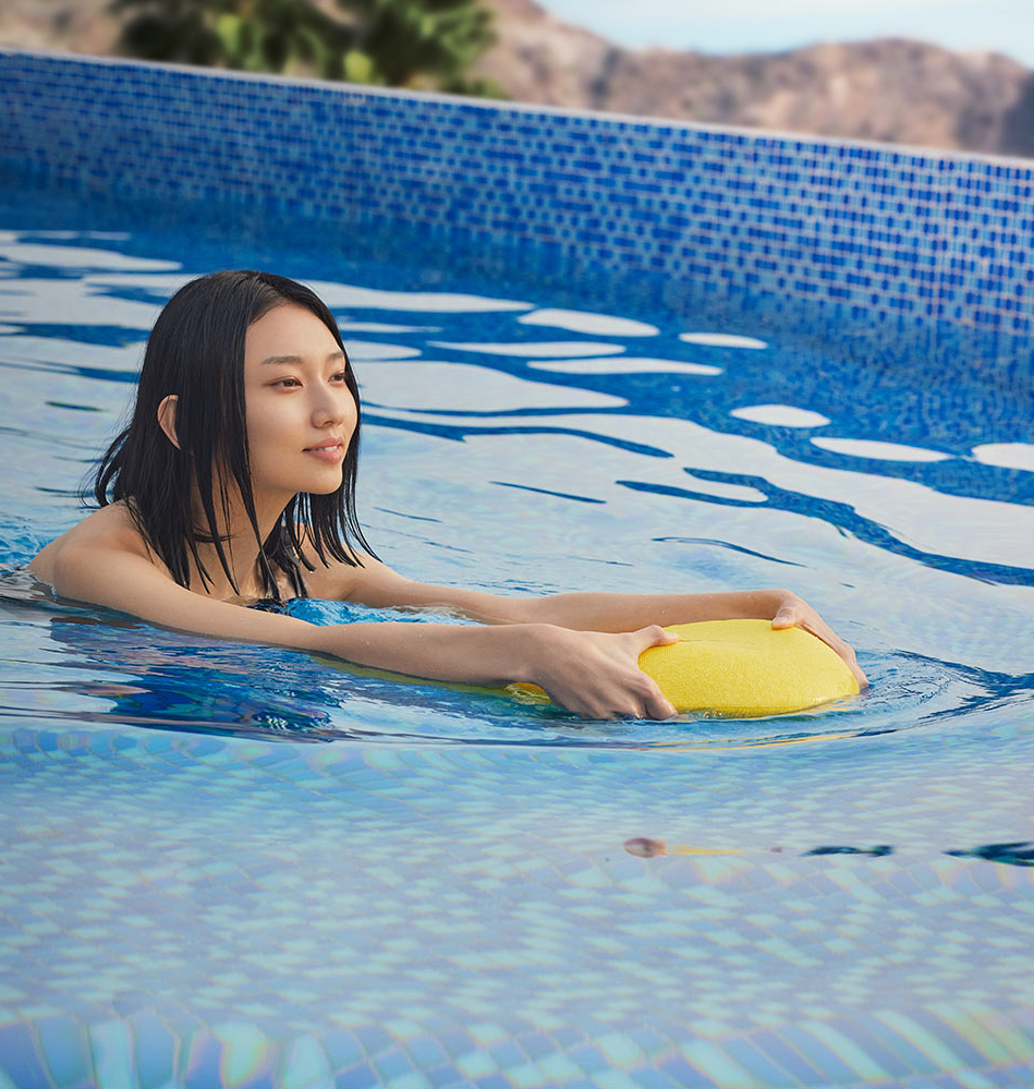 100kg까지 감당해주며 펌프 제트 듀얼 프로펠러 모터를 이용하여 최대 출력 300W에 1.3m/s의 속도까지 낼 수 있습니다. 시속으로는 4.68km/h가 되니 성인의 걸음보다 약간 빠른 정도가 되겠네요. 수영장에서는 별 문제없겠지만 흐름이 있는 강이나 바다에서는 충분한 출력이 아닐 수도 있겠습니다.