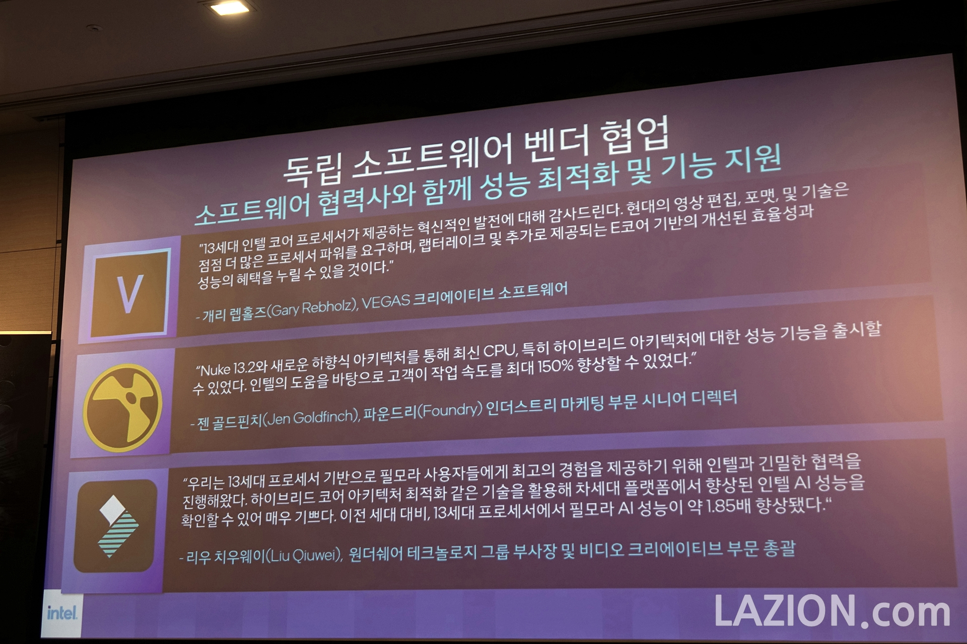 이런 성능 향상에는 소프트웨어 개발사와의 협업도 당연히 필수입니다. 토탈워나 콜오브듀티, 베가스 등의 업체 이름이 보입니다.