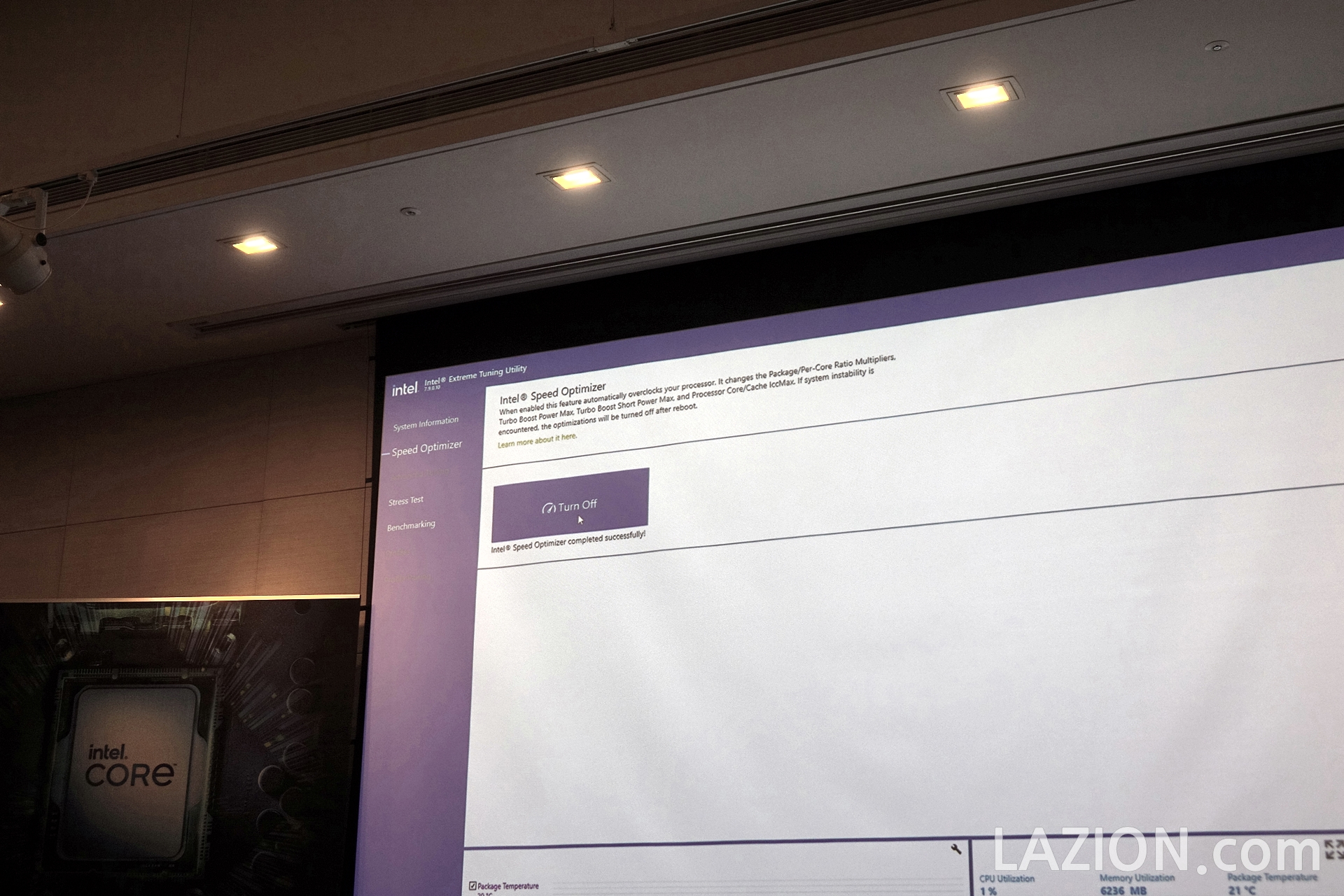물론 K 모델 한정이지만 초보자에서 전문가까지 모두 활용 가능한 제법 친절한 오버클러킹 툴까지 제공합니다. 전문가는 하나 하나 세세하게 조정할 수 있고 초보자 모드에서는 그냥 버튼 하나로 오버클러킹이 가능합니다.