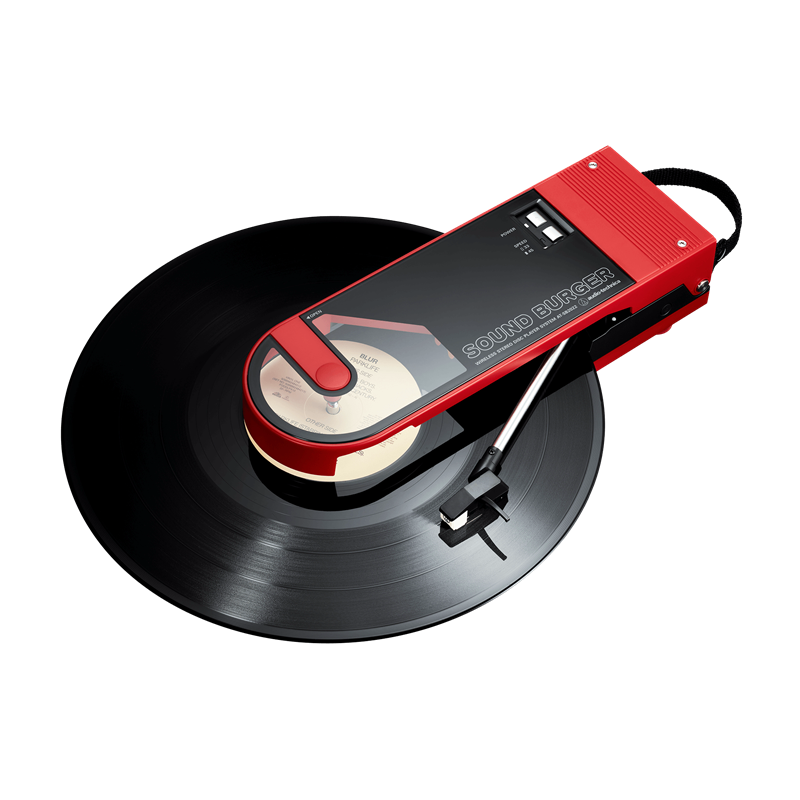 그런데 이 음반을 재생할 수 있는 휴대용 오디오가 있다는 걸 아시나요? 그 특성상 움직이면서 플레이할 수는 없지만 옮겨 다니면서 듣기 쉬운 제품은 있습니다. 그 가운데 가장 유명한 제품이라면 아마도 오디오 테크니카의 사운드 버거(Sound Burger) AT727이 아닐까 합니다. 1983년에 첫 선을 보인 이 휴대용 턴테이블은 미스터 디스크(Mister Disc) AT770이라는 이름으로 팔리기도 했죠. LP 사업이 사양세를 타면서 조용히 잊혀지는가 싶더니 창사 60주년을 기념하여 오디오 테크니카가 사운드버거를 복각하여 한정판 사운드 버거 AT-SB2022라는 모델 명으로 출시했습니다.