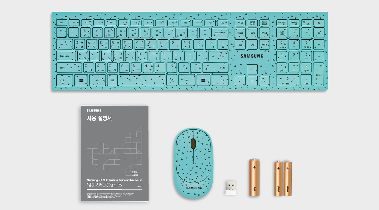 그런데 이런 급박한 상황에서 삼성전자가 일을 하나 저질렀습니다. 무선 키보드와 마우스 세트인 SRP-9500MC를 내놓았는데 제원만 보면 평범하게 볼 수 있는 2.4GHz로 연결하는 무선 키보드와 마우스입니다만,