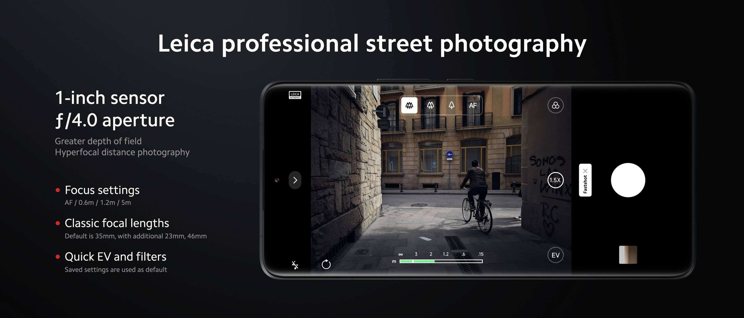 새로운 소니 1인치 IMX989 센서를 쓴 메인 카메라는 f/1.9와 f/4.0 사이를 전환하는 물리적 2스톱 조리개를 갖고 있으며 거리 사진 작가들이 일반적으로 쓰듯이 초점 포인트를 수동으로 설정해 두고 단 0.8 초 만에 찍는 고속 촬영 모드도 지원합니다.