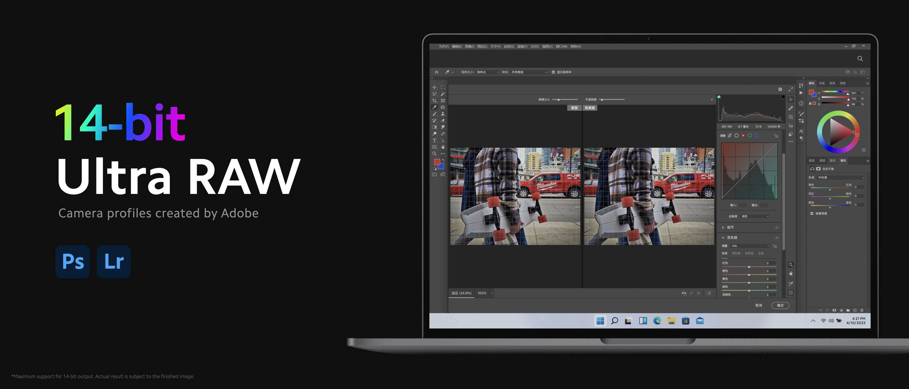 카메라에 신경 쓴 만큼 RAW 이미지 데이터 처리도 개선되었습니다. 샤오미 13 울트라의 메인 카메라는 50MP RAW를 지원하여 더 나은 해상도와 높은 다이나믹 레인지를 제공하는 멀티 프레임 14비트 UltraRAW를 제공합니다. 어도비(Adobe)에서 만든 카메라 프로파일도 준비되어 있습니다.