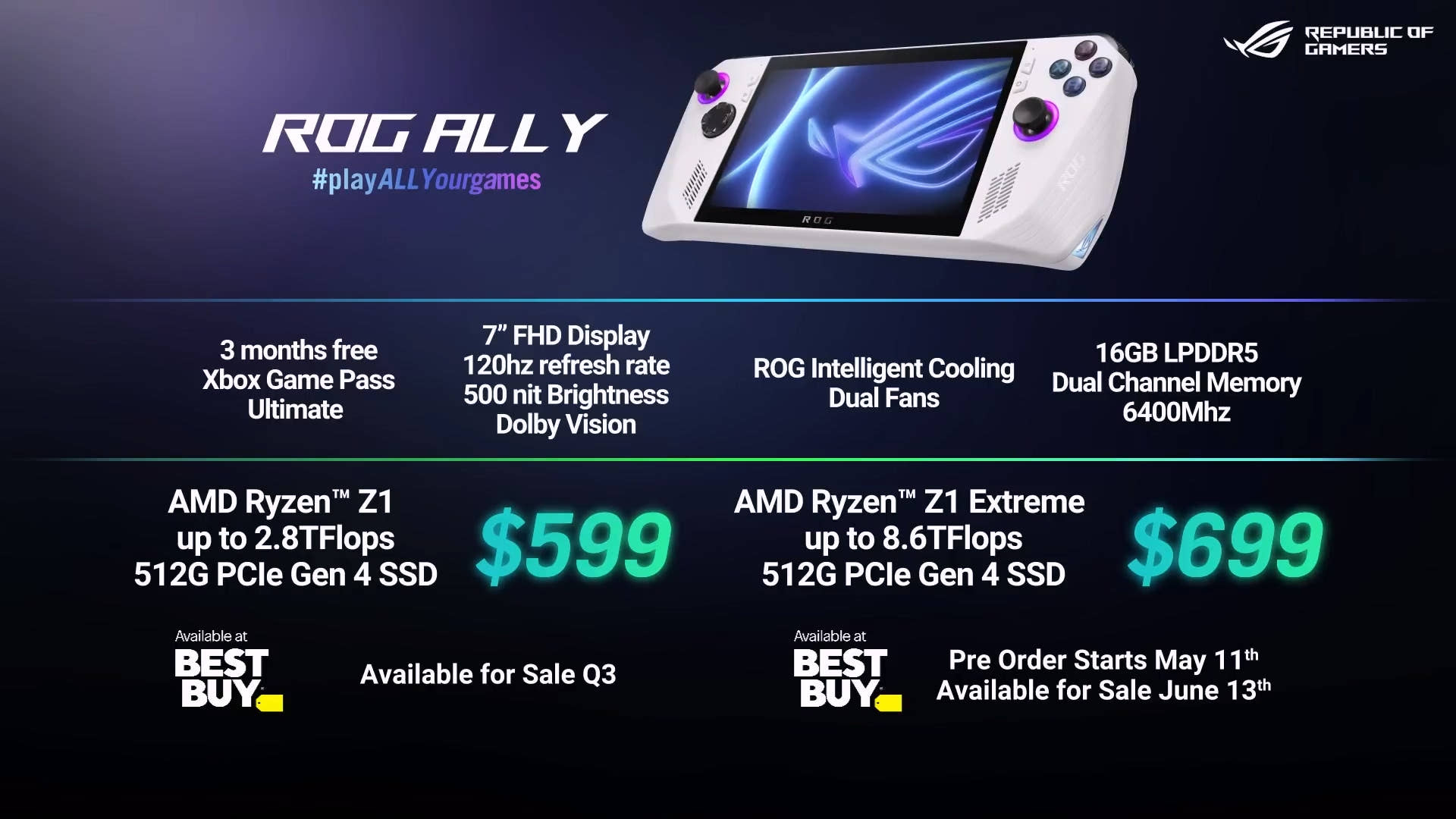 출시 일자는 일단 미국의 경우 라이젠 Z1 익스트림을 쓴 고급형 모델은 5월 11일부터 예약 판매에 들어가고 6월 13일부터 실제 판매를 시작한다고 합니다. 라이젠 Z1의 중급형 모델은 3분기부터 판매에 들어갑니다.
