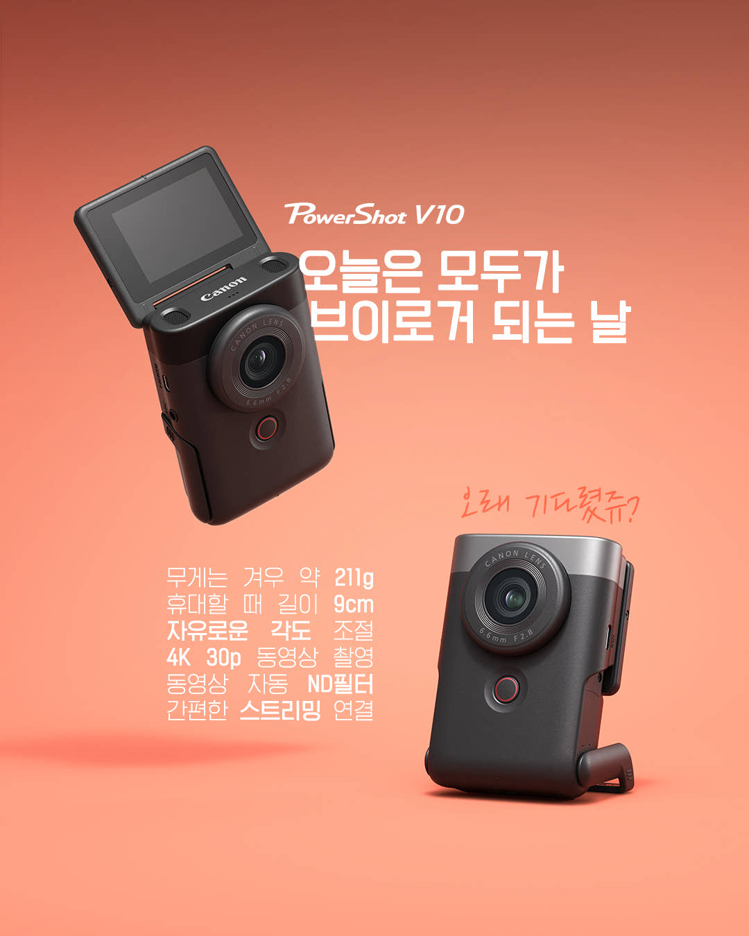 DSLR 카메라로 유명한 캐논(Canon)에서 1인치 센서를 탑재한 VLOG 카메라인 파워샷 V10(PowerShot V10)을 출시합니다.