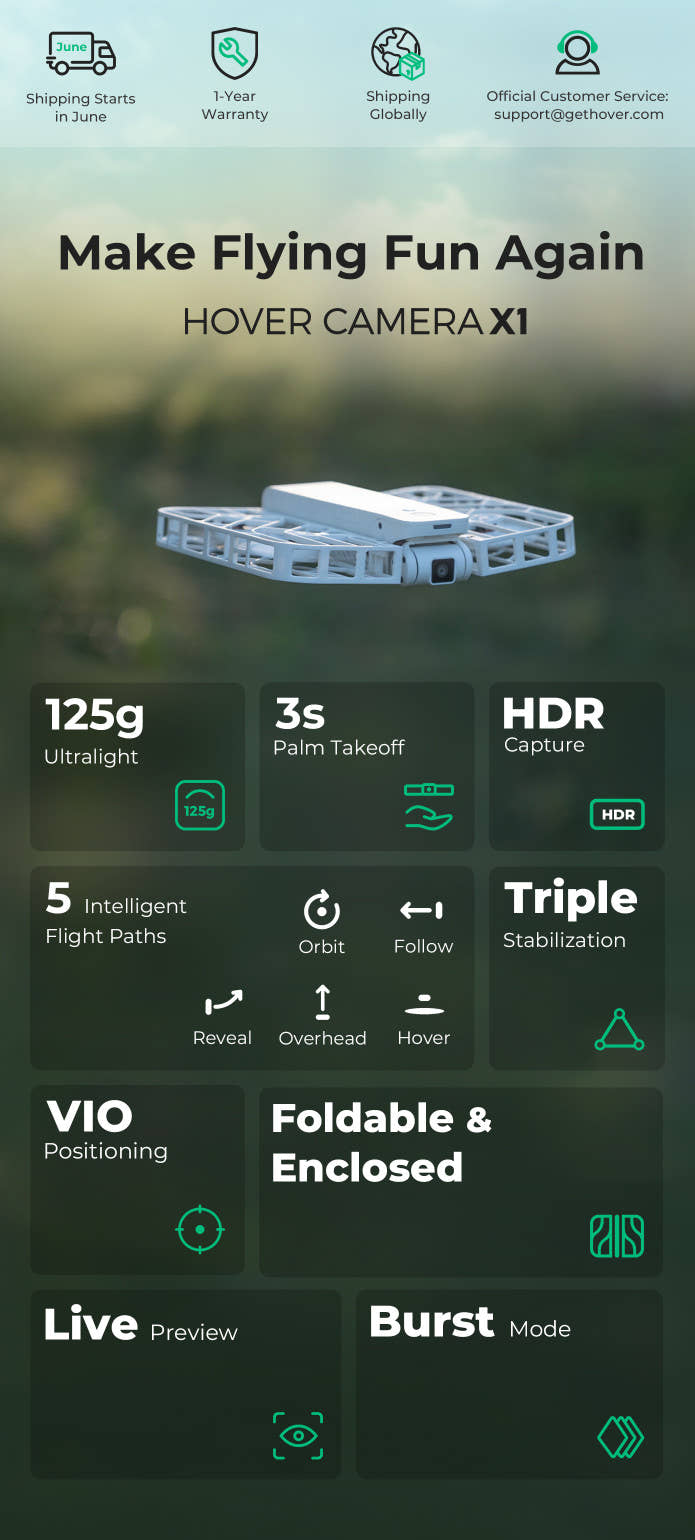 Fly Hands Free|Palm Takeoff | Intelligent Flight Paths | Triple Stabilization | Enclosed Frame | VIO | Check out 'Hover Camera X1: Pocket-Sized Self-Flying Camera' on Indiegogo.