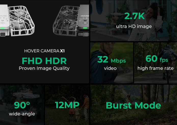사용자는 호버 카메라 X1 앱을 통해 거리, 시간, HDR과 같은 비행 경로 매개변수를 설정할 수 있으며 사진과 동영상을 다운로드, 공유할 수 있습니다.