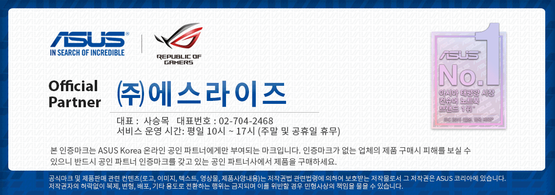ASUS 공식 총판 에스라이즈입니다.