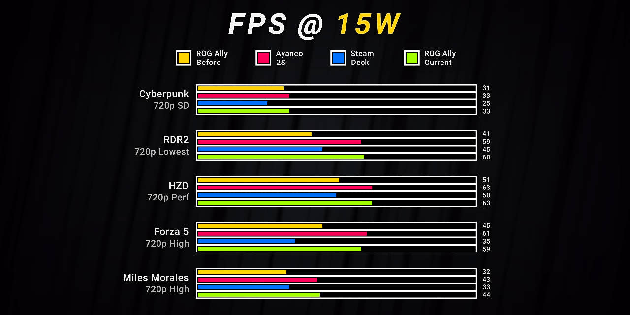 실제로 그가 올린 자료를 살펴보면 720p 기준으로 퍼포먼스 모드(TDP 15W)에서는 평균 29%, 터보 모드(TDP 25W)에서는 평균 17%의 성능 향상을 이뤄냈습니다. 게임 타이틀마다 다르지만 거의 50%에 가까운 성능 향상을 이룬 경우도 있습니다.