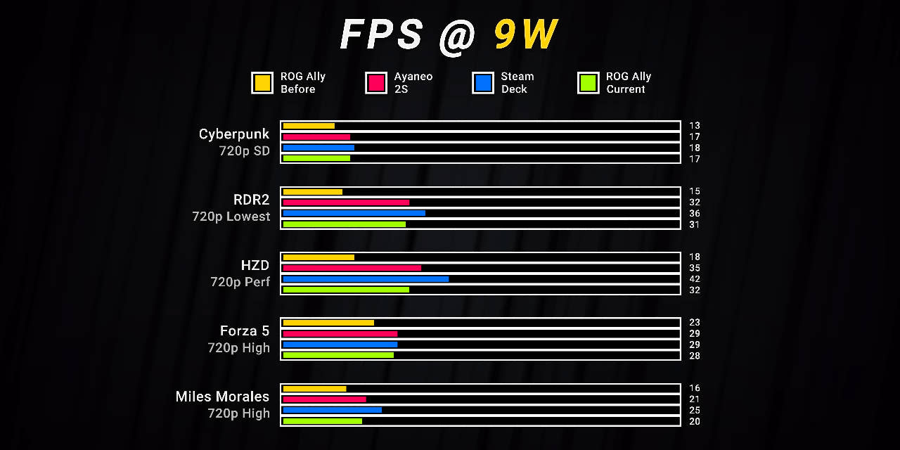 만약 위 레딧 포스트가 진실을 담고 있다면 6월 13일의 업데이트는 아마도 이는 Dave2D가 올린 영상의 내용과 관계가 있는 듯 합니다. 유튜브 채널 Dave2D는 리뷰용 제품으로 이미 받아놓은 ASUS ROG Ally가 최근 올라온 새로운 펌웨어를 통해 초기 상태 대비 15~20%의 성능 향상을 이뤄냈다고 밝히고 있습니다.
