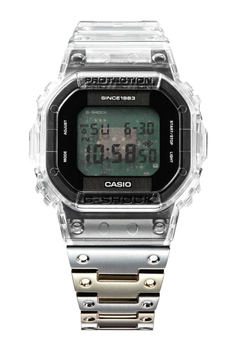 이번 40주년 기념 G-SHOCK CLEAR REMIX 시리즈는 지금까지 없었던 모듈과 회로 기판 등 내부 부품이 보이는 새로운 디자인이면서도 G-SHOCK 시리즈 고유의 내충격성은 그대로 보유한 제품입니다. G-SHOCK 시리즈 첫번째 제품부터 시작하여 모델 7종을 엄선, 케이스, 밴드, 액정 버튼 등에 스켈레톤 소재를 적용했습니다.