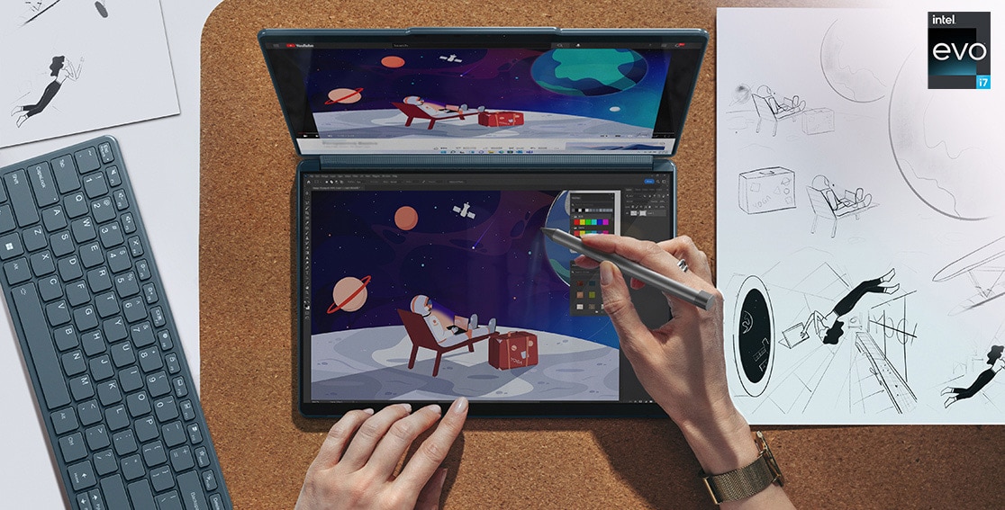 하드웨어 면에서는 13세대 인텔 코어 i7 프로세서와 인텔 아이리스 Xe 그래픽을 탑재했으며 요가북 9i는 인텔 Evo 플랫폼 인증을 획득해 프리미엄 씬 앤 라이트 노트북으로서 최상의 하이브리드 성능을 자랑합니다.