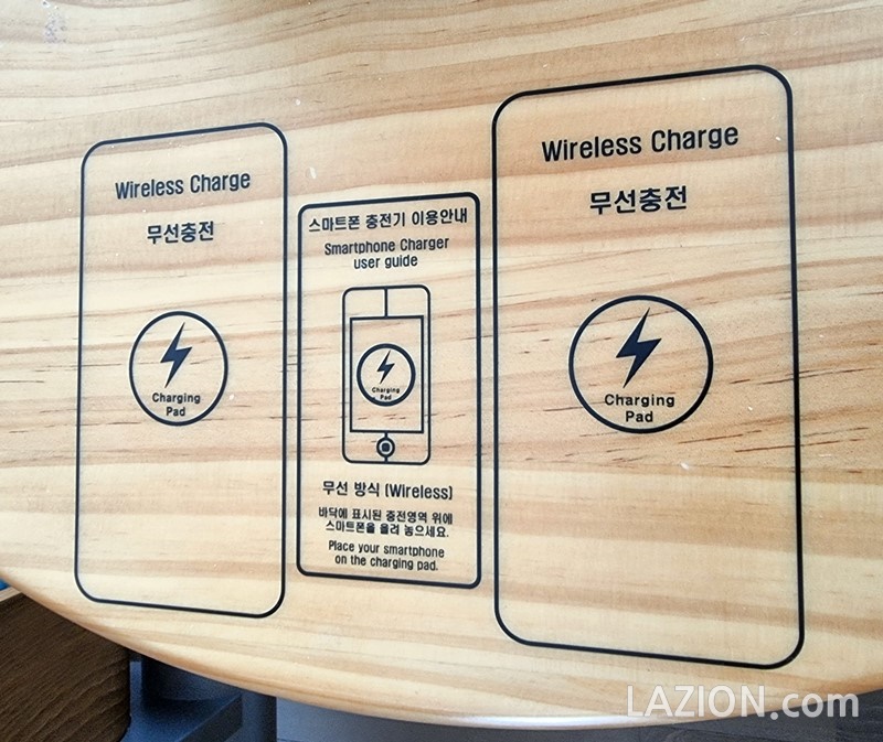 나름 구성 자체는 비슷하긴 한데, 인천 공항보다는 다소 부족한 느낌입니다. 고장난 곳도 있고요. ANKER 사의 무선 충전 패드가 눈에 띕니다.