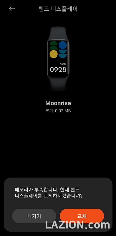 여기에 더해서 레드미 스마트 밴드 2의 본체의 저장 공간이 좁아서 그런지 워치 페이스 저장은 하나만 가능합니다. 기본으로 제공하는 2개에 더해서 이용자가 고른 1개만 저장할 수 있어서 총 3개 가운데 하나 고를 수 있고, 다른 워치 페이스를 고르겠다면