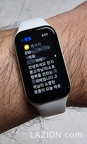 덕분에 문자 메시지나 카톡이 와도 대충 알아볼만한 크기의 글자로 보여줍니다. 다만 글자 크기를 더 키워도 될 것 같은데 그런 설정은 없습니다. 메시지가 긴 경우 받은 화면에서는 전체를 다 볼 수 없고 나중에 알림 목록에서 봐야 전체를 볼 수 있다는 단점도 있지만 크게 불편하진 않습니다.