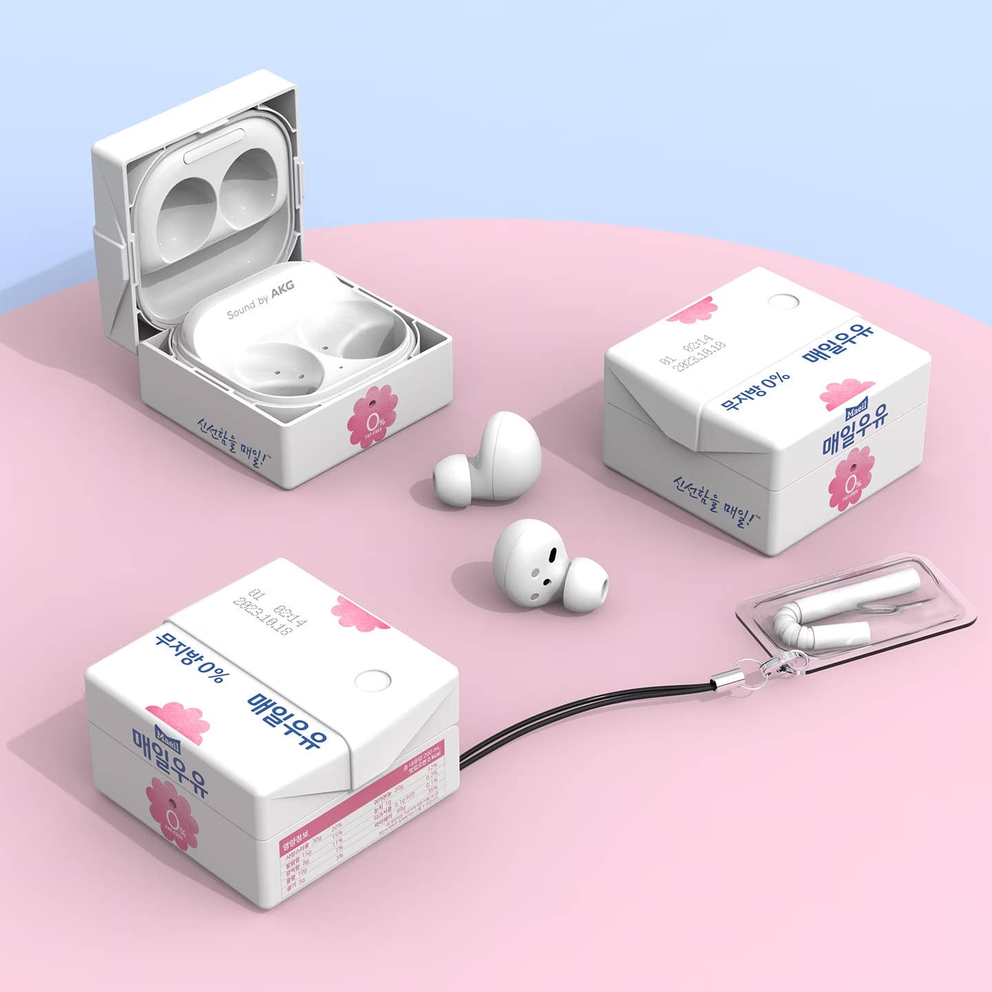 갤럭시 버즈 FE 얼리버즈 프로모션과 함께 나온 매일우유 콜라보 버즈 케이스는.... 예상 밖으로 정말 예쁘고 귀엽네요. 위의 사진은 흰우유 버전(블루)이지만,