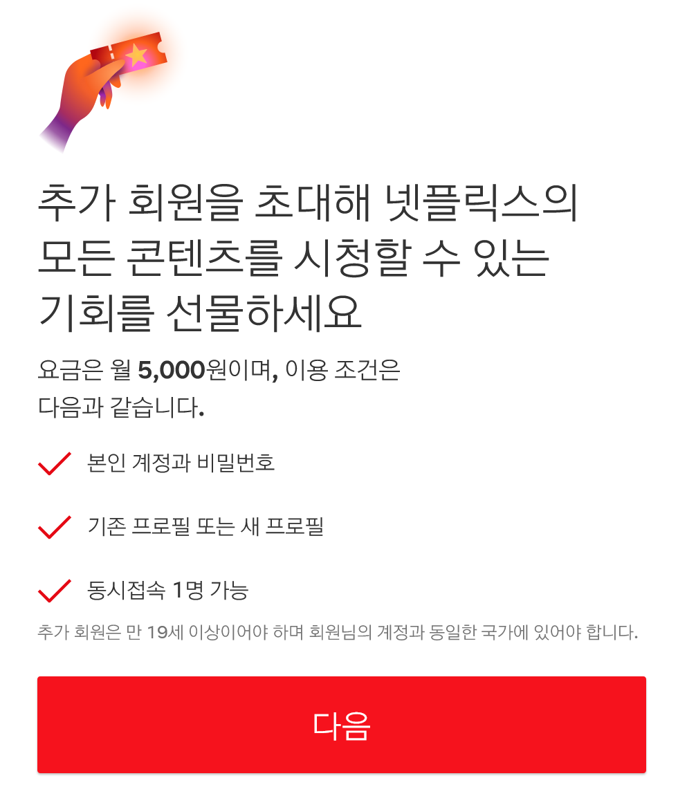 - 다른 곳에 사는 이들과 자신의 계정을 공유하고 싶다면 매월 5,000원을 추가로 지불해라.