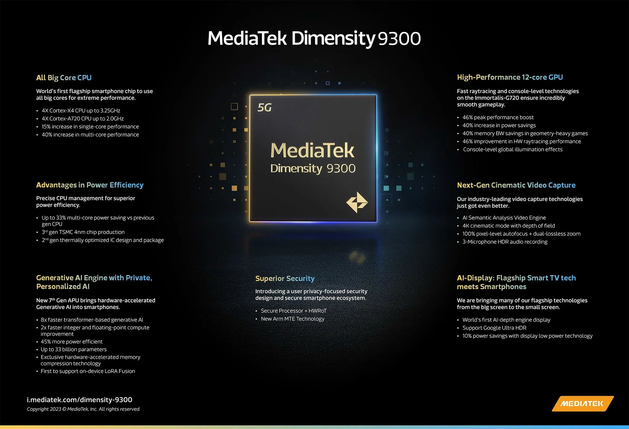 미디어텍의 디멘시티 9300을 내장한 스마트폰은 2023년 말부터 출시될 예정입니다.