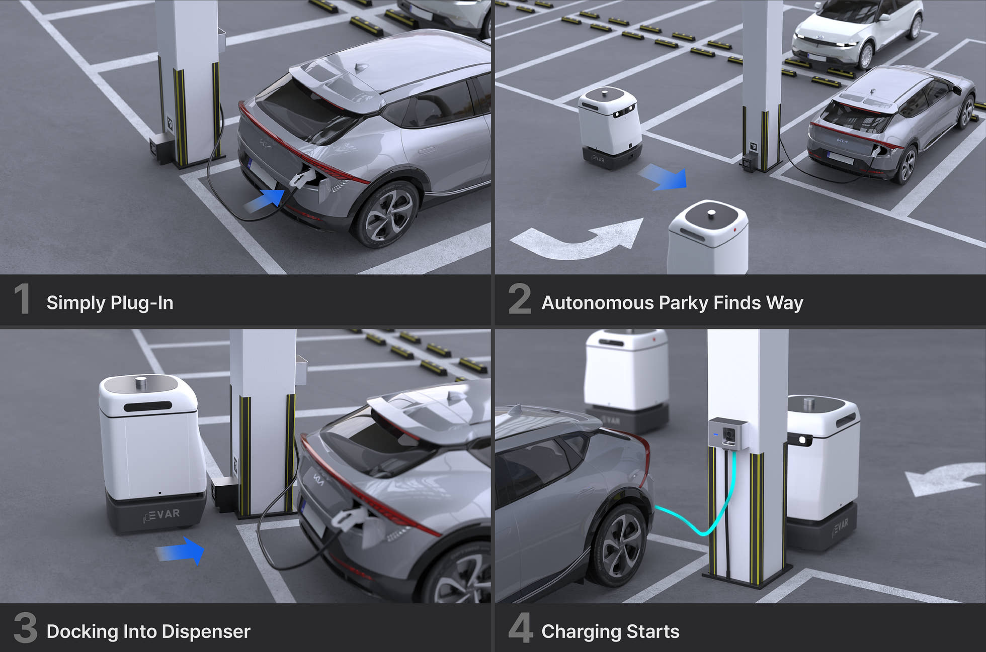 1. 운전자가 차량을 주차한 후 스마트폰 등을 통해 QR 코드를 스캔한 뒤 충전 케이블을 찾아 차량과 연결합니다.