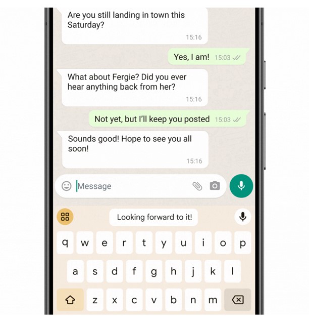 가장 작은 온디바이스 AI 모델인 제미니 나노는 픽셀 8 프로에 처음 들어가며 녹음기 앱의 요약하기 기능을 지원합니다. 내년에는 왓츠앱을 시작으로 많은 메시지 앱에서 G보드의 스마트 리플라이(Smart Reply) 기능이 제공될 예정입니다.