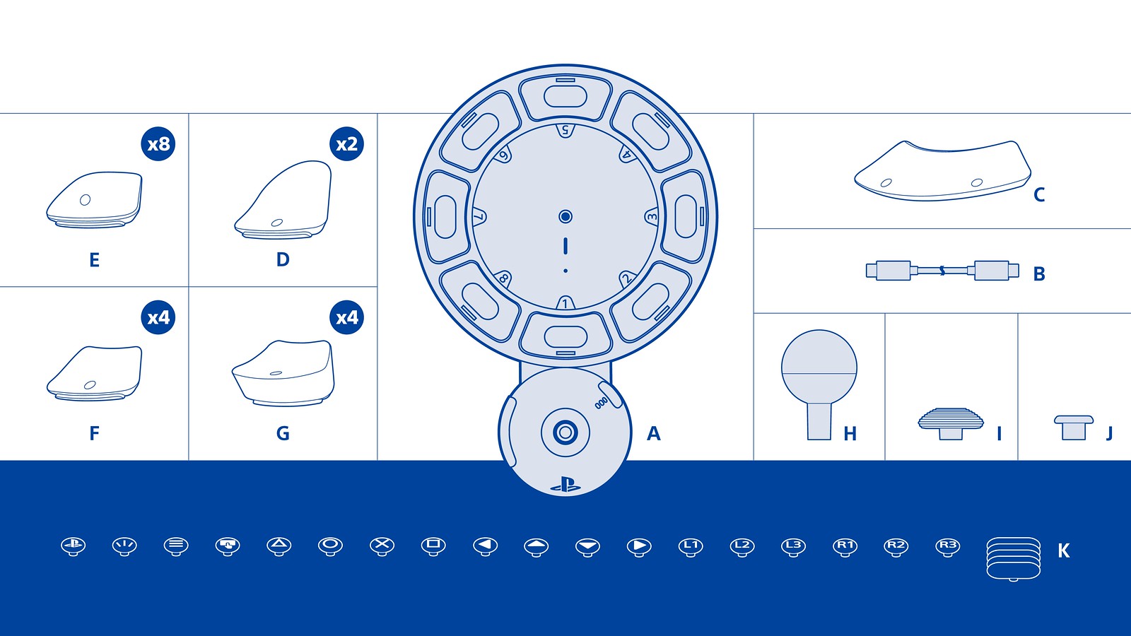 액세스 컨트롤러는 다양한 모양과 디자인으로 교체 가능한 버튼 캡 19개와 스틱 캡 3개로 신중하게 구성한 키트를 포함해 커스터마이징 가능하도록 만들어져 위의 세가지 상황을 모두 해결하도록 만들어져 있습니다.