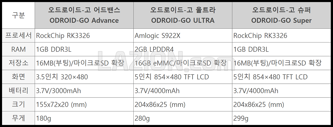 하드커널 15주년 50% 할인 판매 : 오드로이드 고 어드밴스/울트라/슈퍼(ODROID-GO Advance/ULTRA/SUPER) 휴대용 게임기 3종