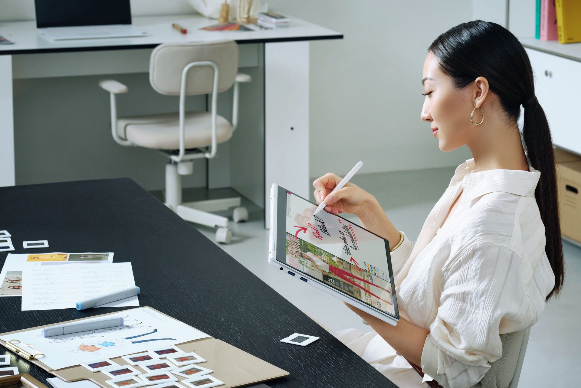 더 슬림해진 전용 스타일러스 펜은 응답 속도가 높아졌으며 본체에 자석으로 부착해 무선 충전도 가능합니다.