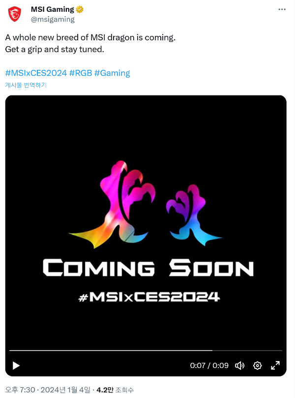 MSI가 CES 2024에서 게이밍 UMPC를 공개할 것이라는 티저 영상을 내보내 화제입니다.